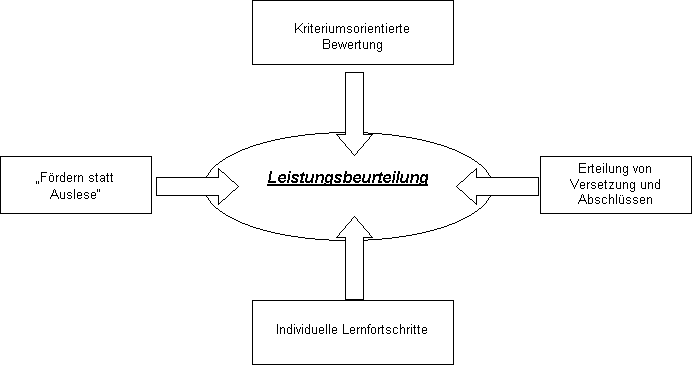 Die Bewertung einer Schülerleistung bewegt sich in der Regel im Spannungsfeld des individuell erzielten Lernfortschrittes und einer kriteriumsorientierte Beurteilung, die sich an den fundamentalen Anforderungen des Grund- oder Hauptschulcurriculums ausrichtet.
